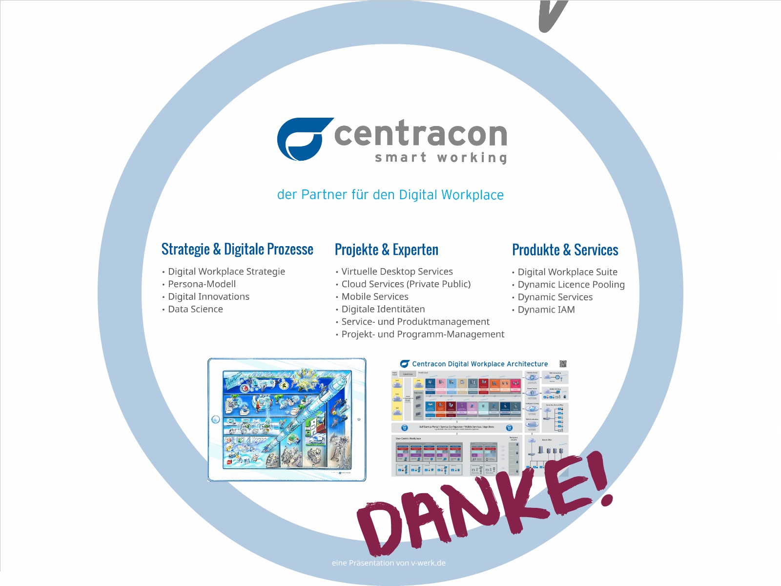 Entwicklung einer Präsentation zum Thema "User Centric Workplace" für unseren Kunden Centracon, der in der IT-Branche zuhause ist. Statt wie üblich mit Powerpoint zu arbeiten, haben wir diesmal eine "Prezi" entwickelt. Insbesondere bei der Darstellung komplexer IT-Sachverhalte zeigt diese Art der Präsentation mit dem spielerischen Zooming ihre Stärken. Die Präsentation ist nicht nur ein hervorragendes Erklär-Tool, sie ist auch wesentlich lebendiger und damit unterhaltsamer für Ihr Publikum. Der ungewöhnlich große Beifall für die erste Prezi, die unser Kunde gehalten hat, gibt uns Recht, daß wir gemeinsam den richtigen Weg gewählt haben.