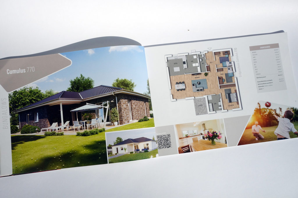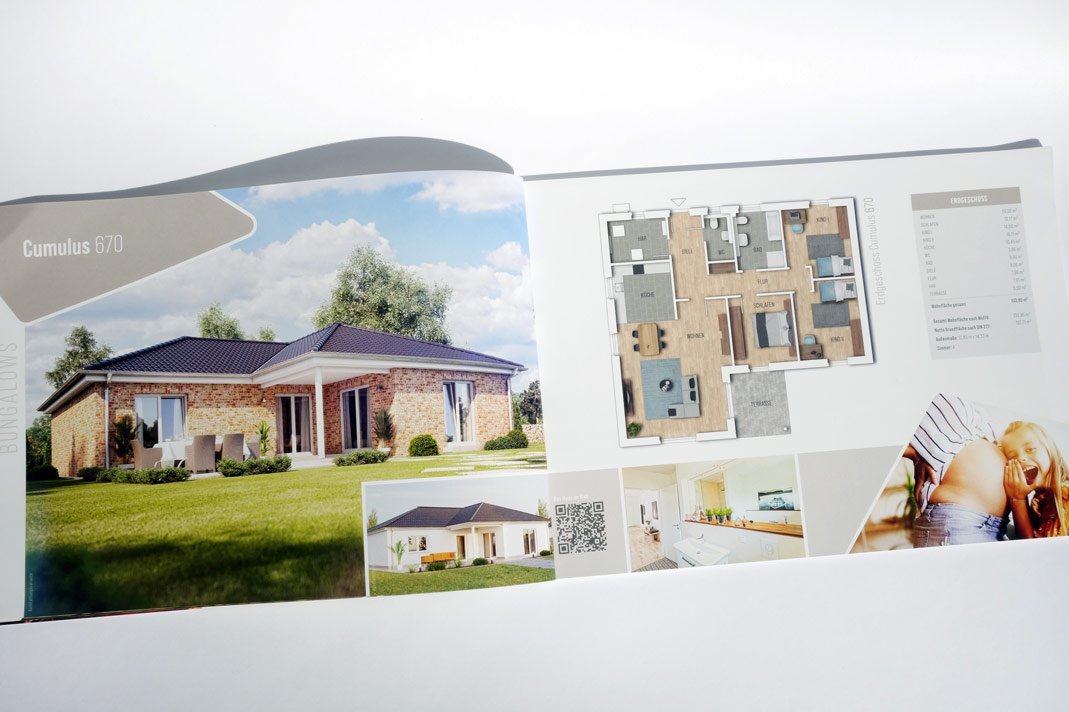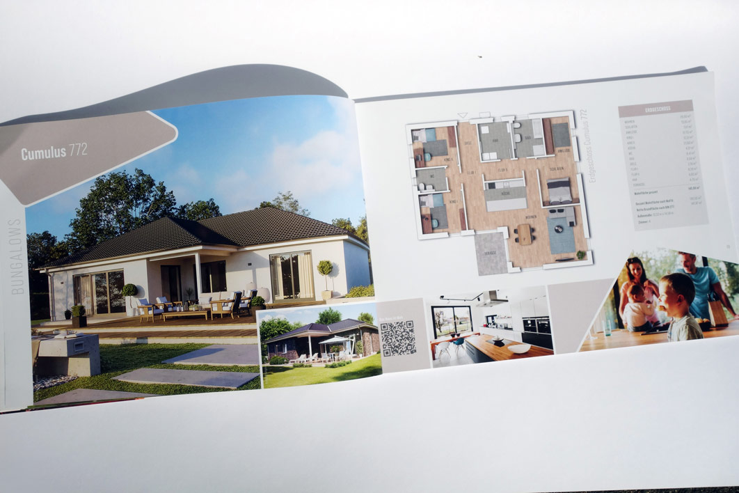 64-seitiger Katalog "Bungalows" mit Imageseiten und Vorstellung der Haustypen
