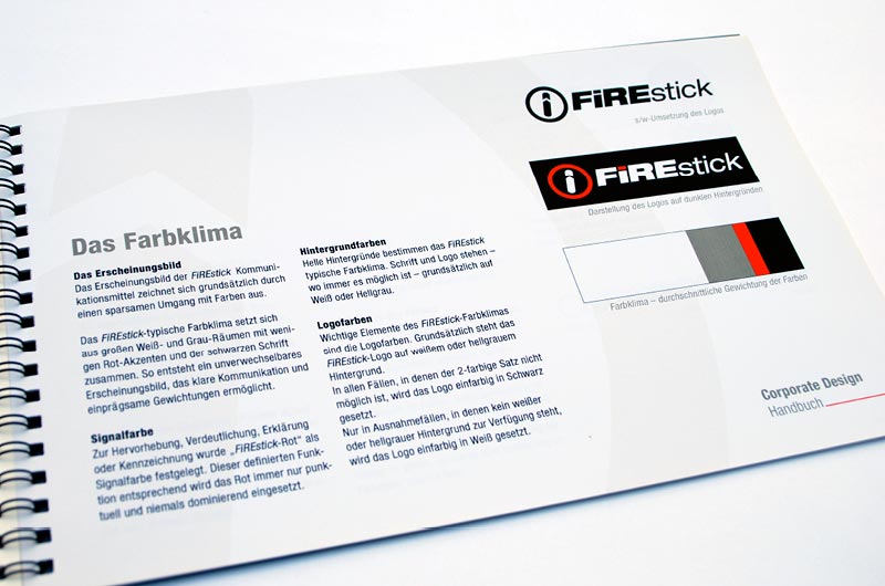 Entwicklung des Produktlogos FIREstick für einen USB-Stick, der eine wirksame Firewall enthält. Vorgabe war, daß das Logo auf weitere Produktlogos adaptierbar sein sollte.