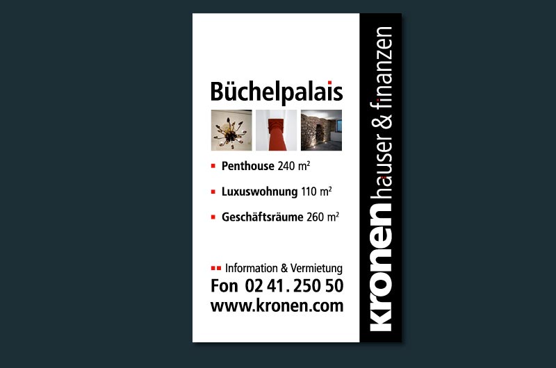 Logoentwicklung, Geschäftsausstattung, Bauschilder und Anzeigen für ein Maklerbüro, das auf sehr hochwertige Immobilien und Anlageberatung spezialisiert ist.