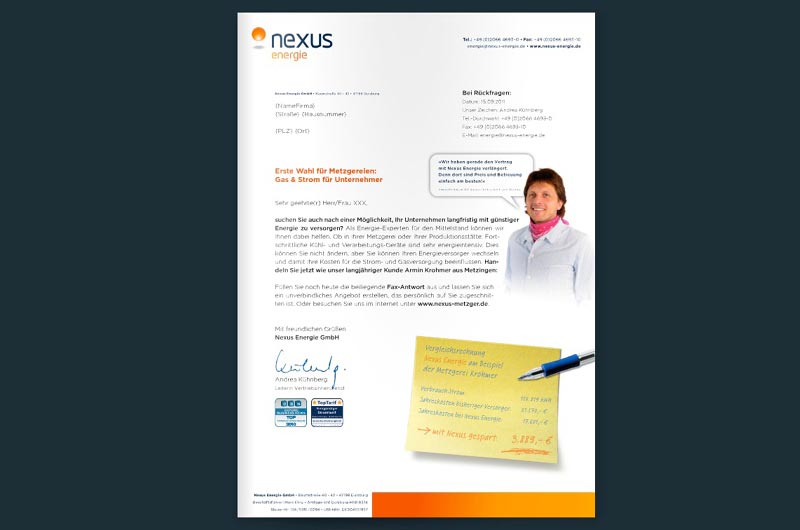 2. Stufe eines Mailngs, das sich speziell an die Berufsgruppe "Metzger" wendet. Diese Mailings wurden für diverse Berufsgruppen umgesetzt, um die einzelnen Zielgruppen möglichst treffsicher "abzuholen".